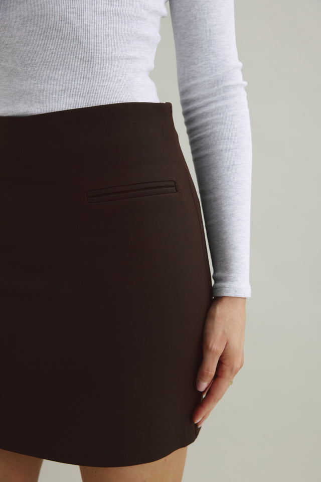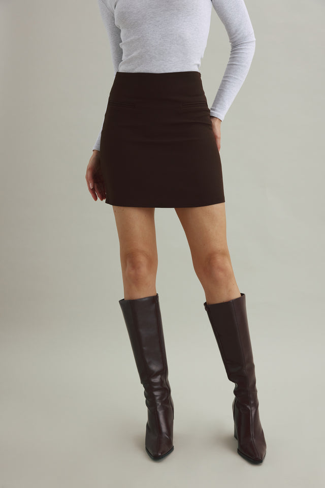 Der perfekte Begleiter zu deinem Statement-Blazer: Cora gerade geschnittener Minirock besticht durch klare Linien und zeitlose Eleganz.