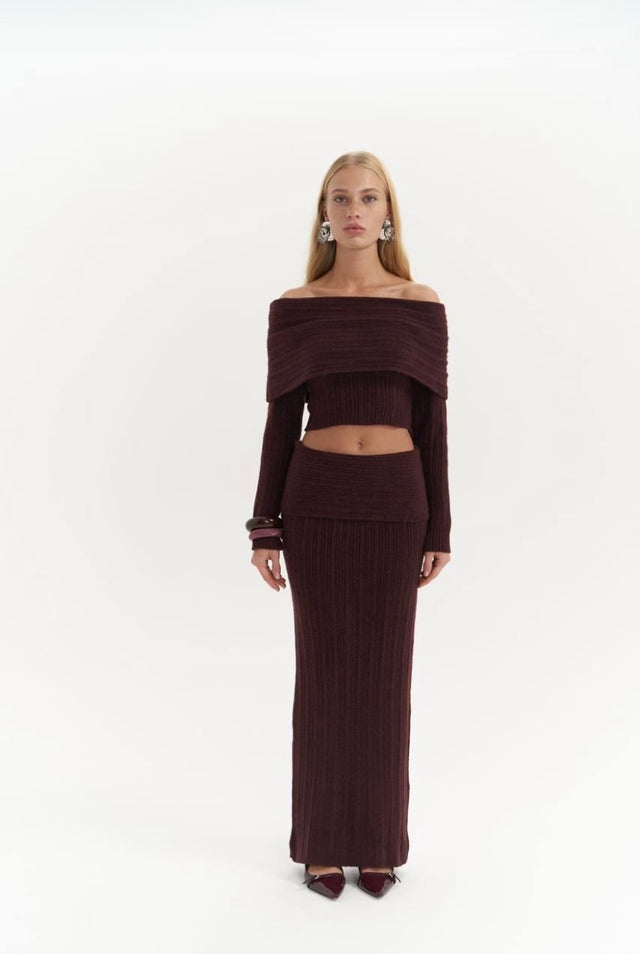Rich Layers in Burgundy & Brown.Set Lana ist die Definition von eleganter Gemütlichkeit: Der Langarm-Pullover mit feinem Umschlagdetail trifft auf einen Maxirock, ebenfalls mit stilvollem Umschlag, und schafft so ein harmonisches...